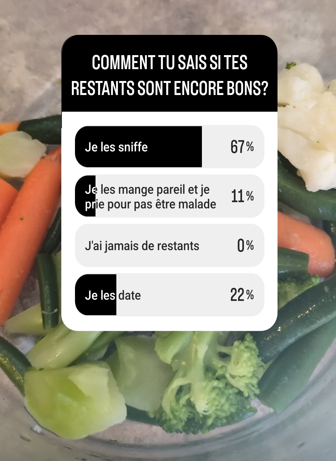 La stratégie est donc de développer tes compétences culinaires pour pouvoir mieux gérer tes restants. Facile à dire, pas facile à faire. Mais un petit pas à la fois, dis-toi que si déjà tu gères mieux tes restants, c’est déjà vraiment bon.